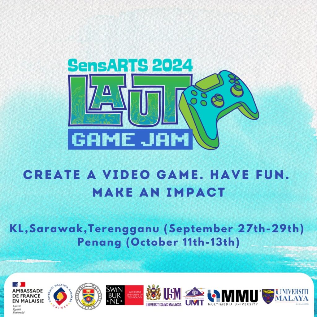 Gamification Centre, Universiti Malaysia Sarawak (UNIMAS) is proud to be a partner of SensARTS 2024 – Game Jam Laut, a unique initiative by the French Embassy in Malaysia that blends creativity, technology, and science to inspire ocean preservation. Building on the success of Ocean Hackathon KL (2022 & 2023) and the SensARTS programme (2023), this friendly competition challenges participants to design functional video game prototypes that highlight marine conservation. Game Jam Laut will be held across four key locations in Malaysia, including Sarawak, Kuala Lumpur, Terengganu, and Penang, with the Sarawak edition hosted by UNIMAS from 27th to 29th September 2024.